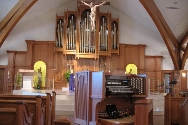 The redesigned organ incorporates newly carved architectural elements in a distinctive two-tone finish, complementing the church’s interior while reflecting Colby’s meticulous craftsmanship. Digital voices were integrated with the restored pipework, expanding the organ’s tonal resources and versatility for both liturgical and concert use. A new custom console, designed to match the visual redesign, completes the installation.