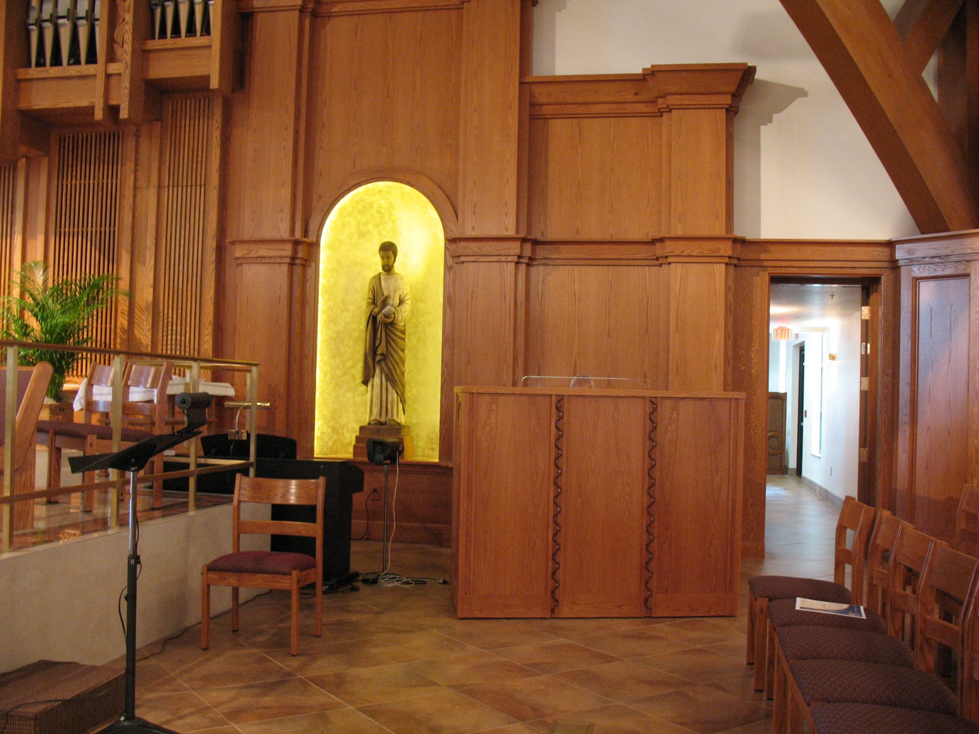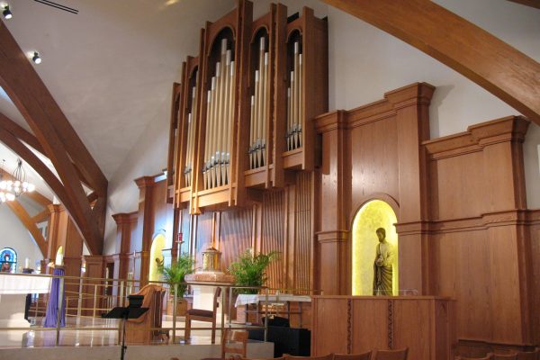 R. A. Colby carried out a comprehensive renovation and redesign of the organ at St. William’s Roman Catholic Church. The entire instrument and its casework were removed from the sanctuary to allow for a complete visual and mechanical transformation.